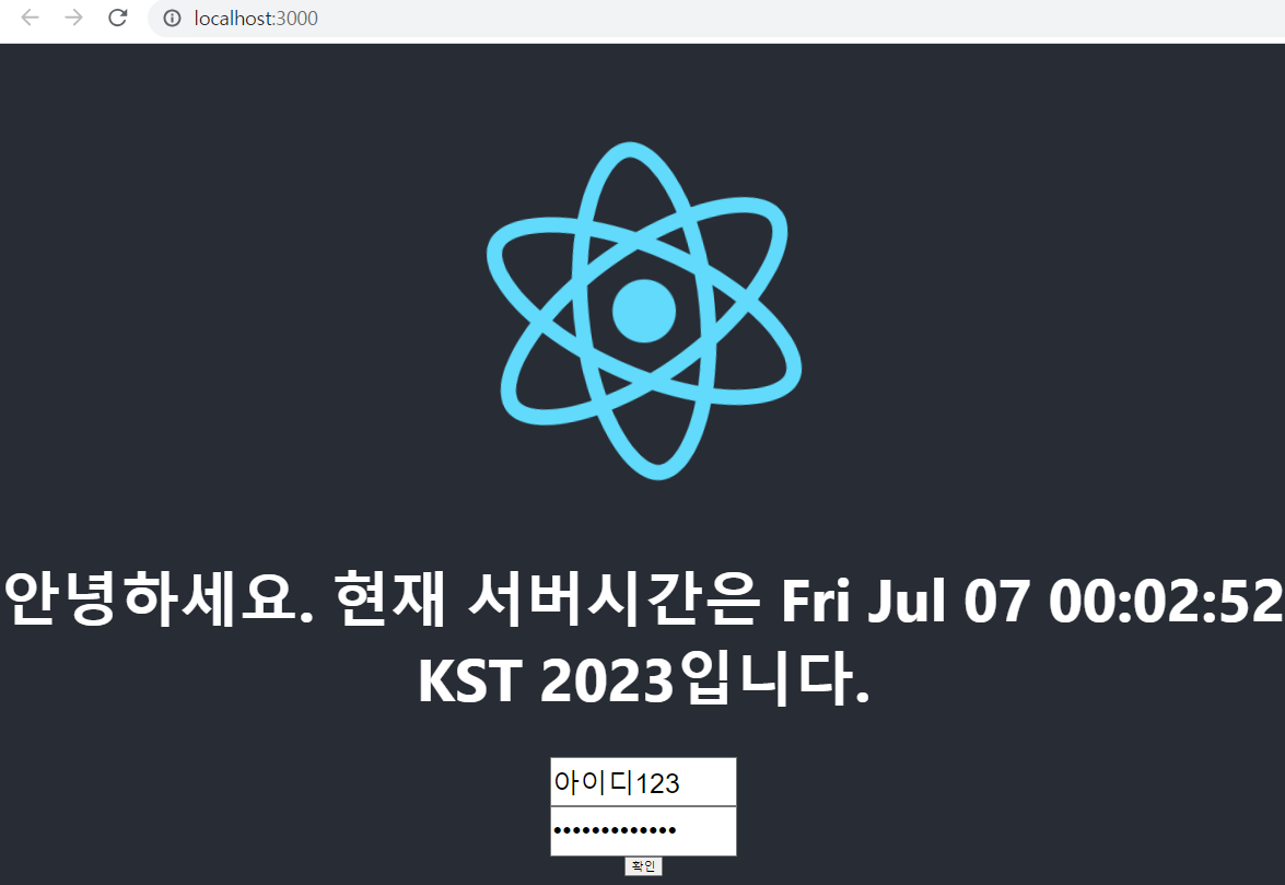 React에서 ID : 아이디123 , PW : 비밀번호123 입력하여 확인 버튼을 누르면