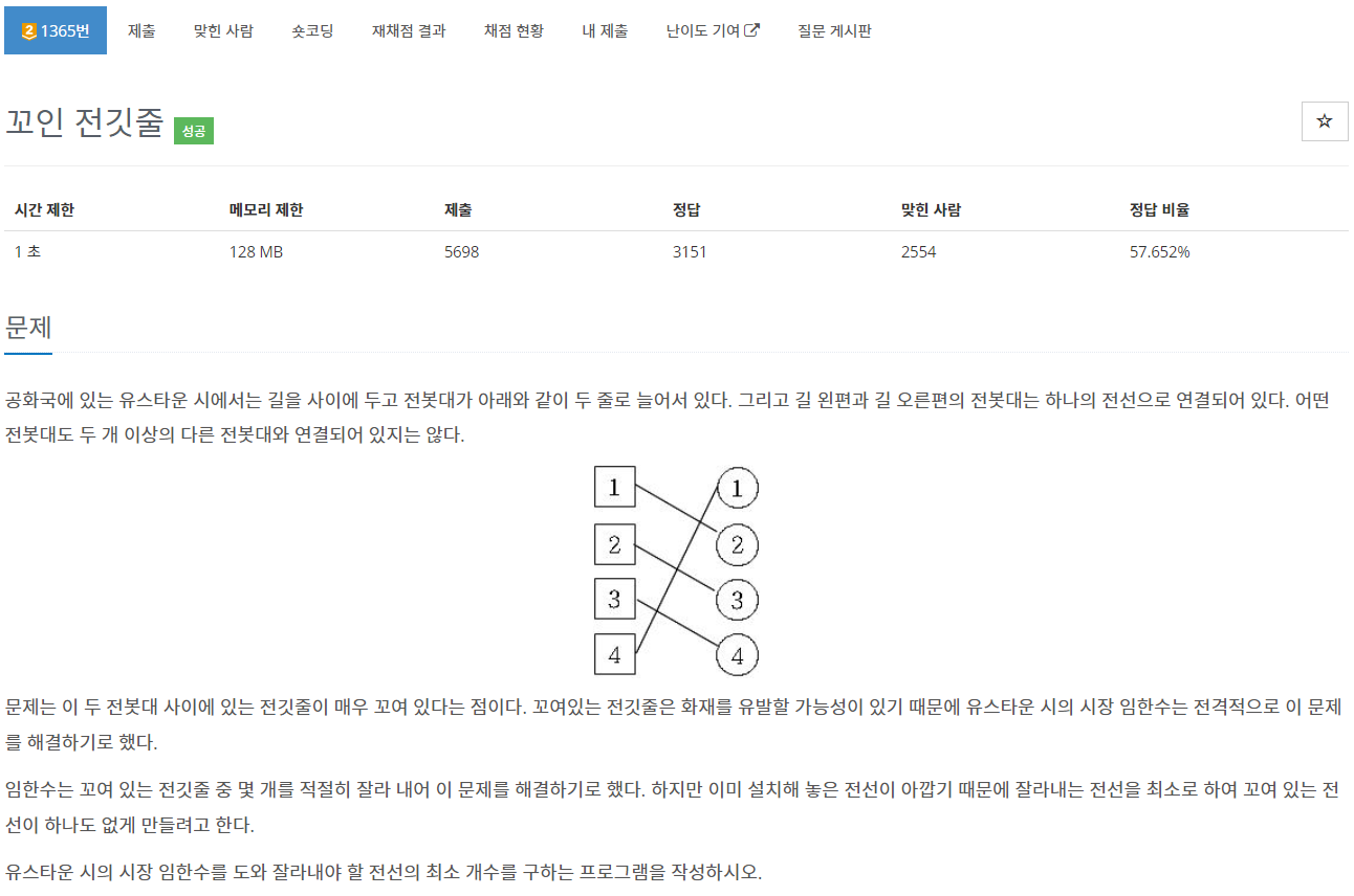1365번: 꼬인 전깃줄