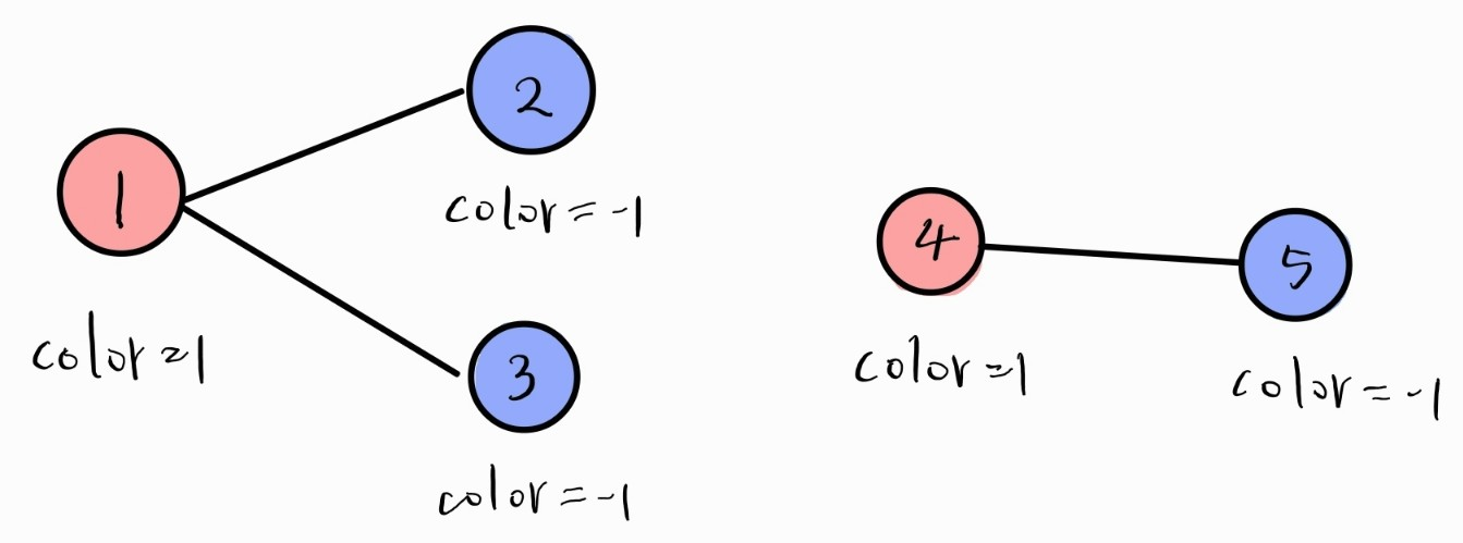 이런 이분 그래프의 성질을 이용하여 BFS를 사용하면 문제를 풀 수 있다.