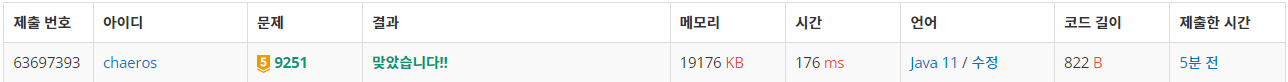 사용한 알고리즘 : DP, LCS(Longest Common Subsequence)
