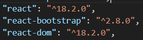 package.json 파일에서 react와 react-dom이 18.1.0 버전 이상이어야 문제없이 설치가 가능하다.