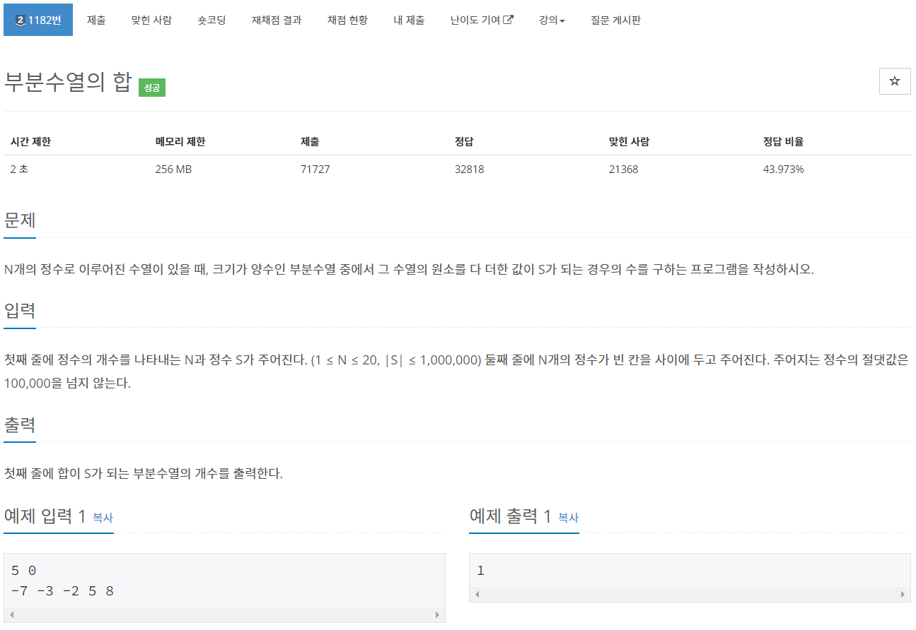 https://www.acmicpc.net/problem/1182