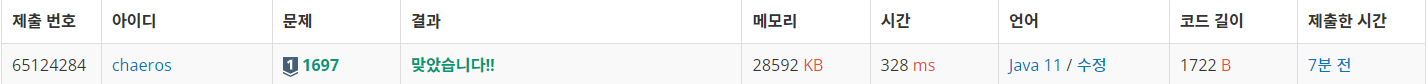 해당 인덱스에서의 이동거리를 출력하면 정답이 도출된다.