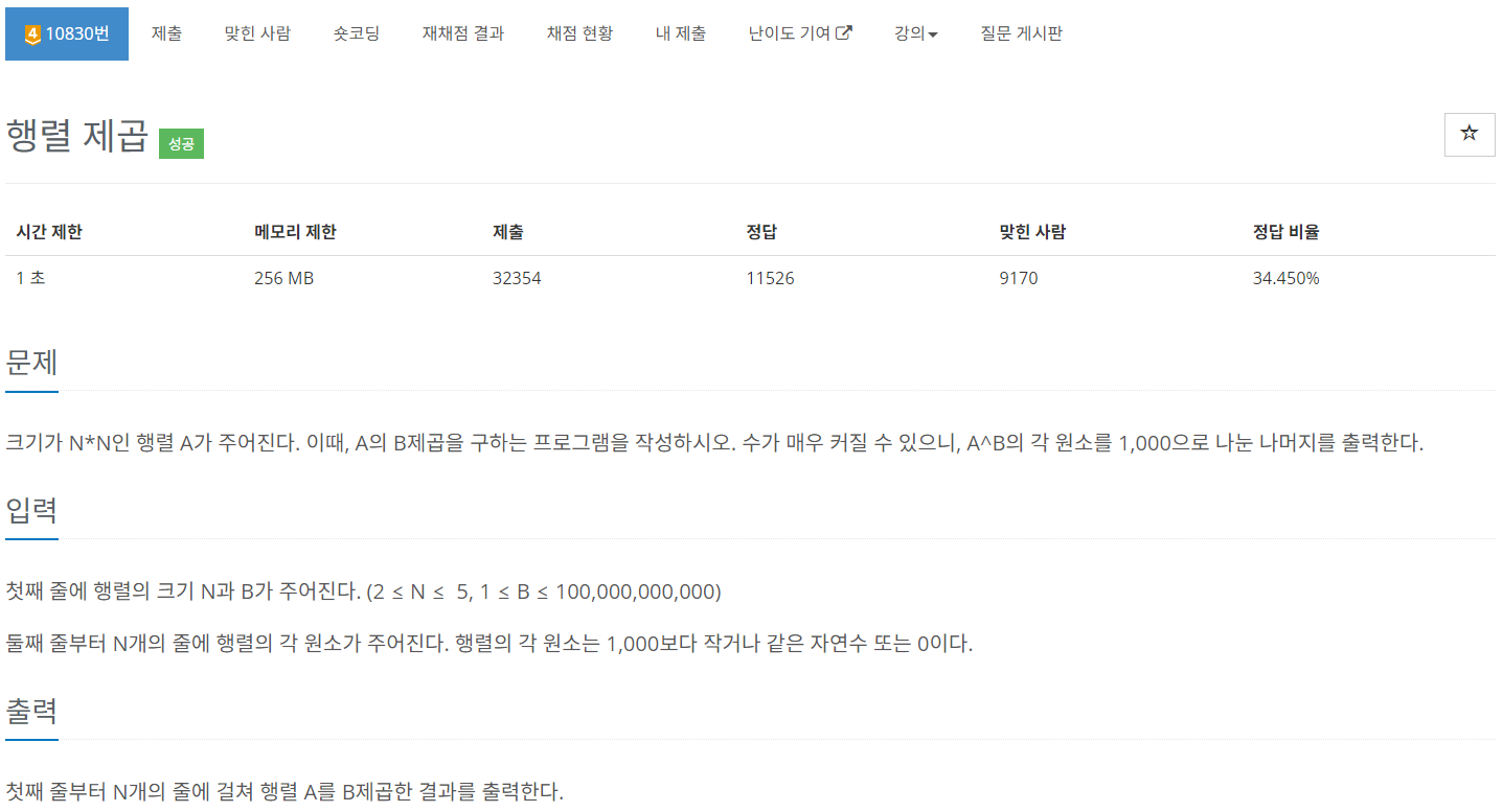 https://www.acmicpc.net/problem/10830