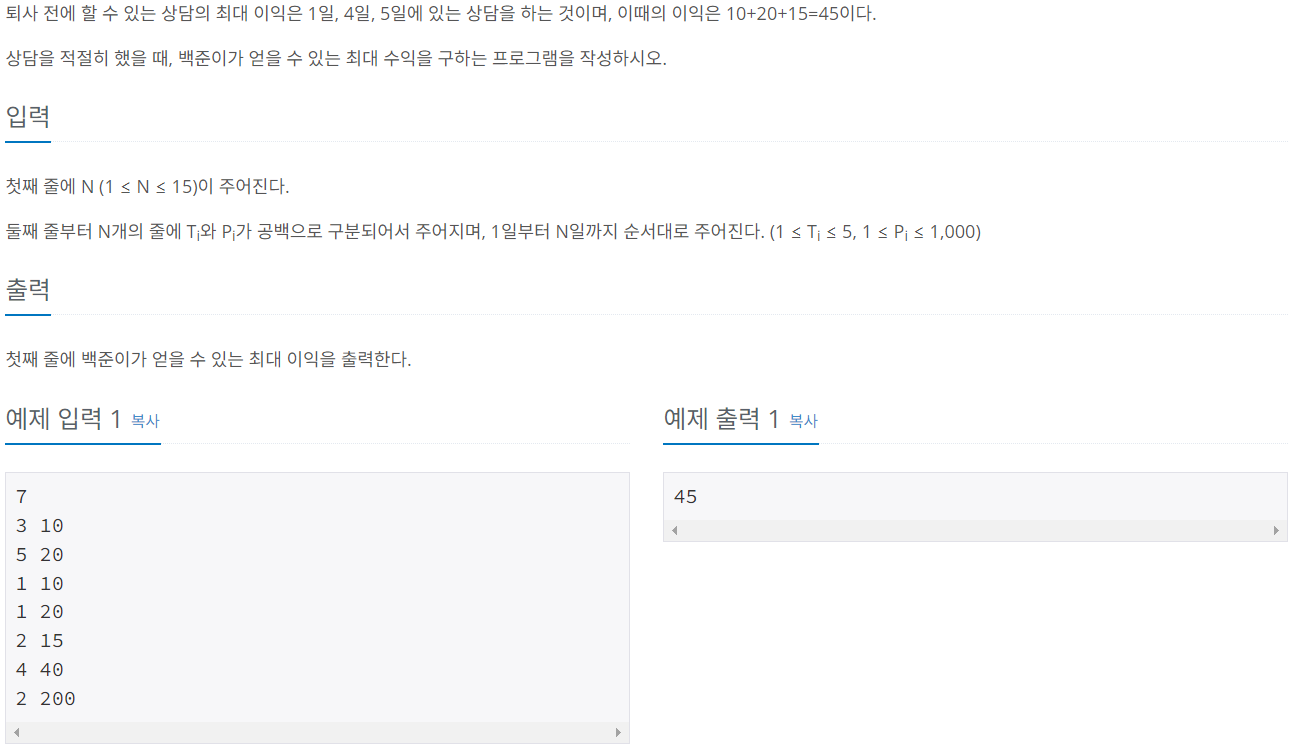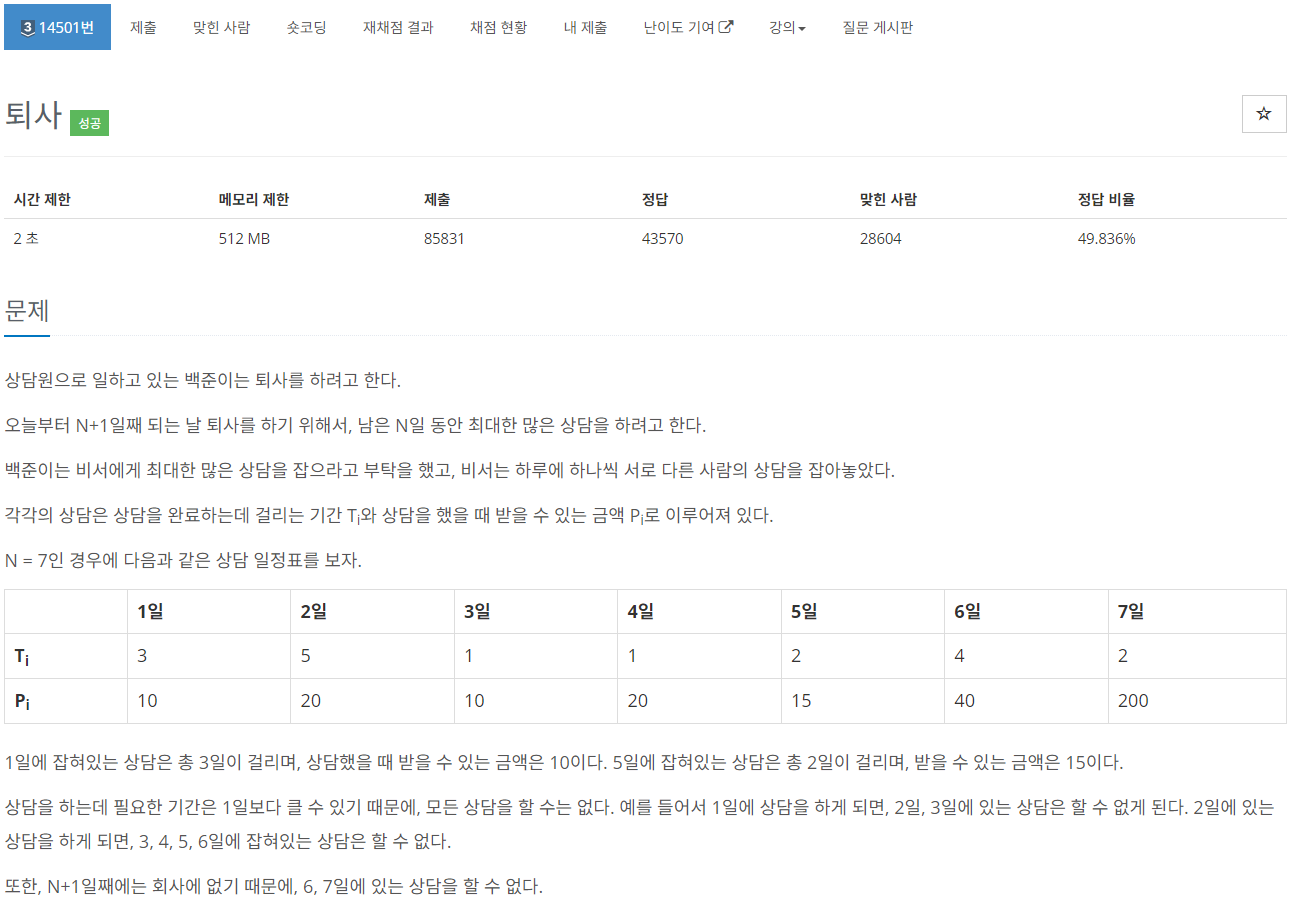 https://www.acmicpc.net/problem/14501