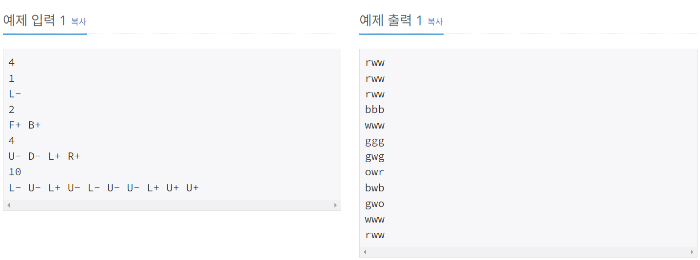 큐브를 이중 배열을 통해 구현하고 이를 회전시키는 작업을 수행할 것이다.