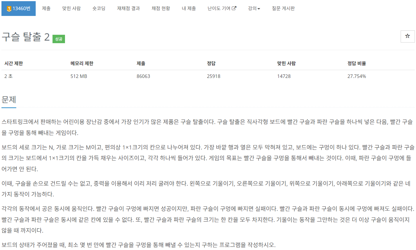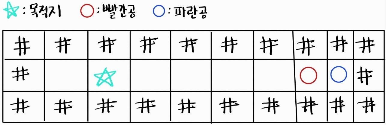 - 파란공이 목적지에 도달하면 해당 이동은 어떠한 경우에도 실패이다.