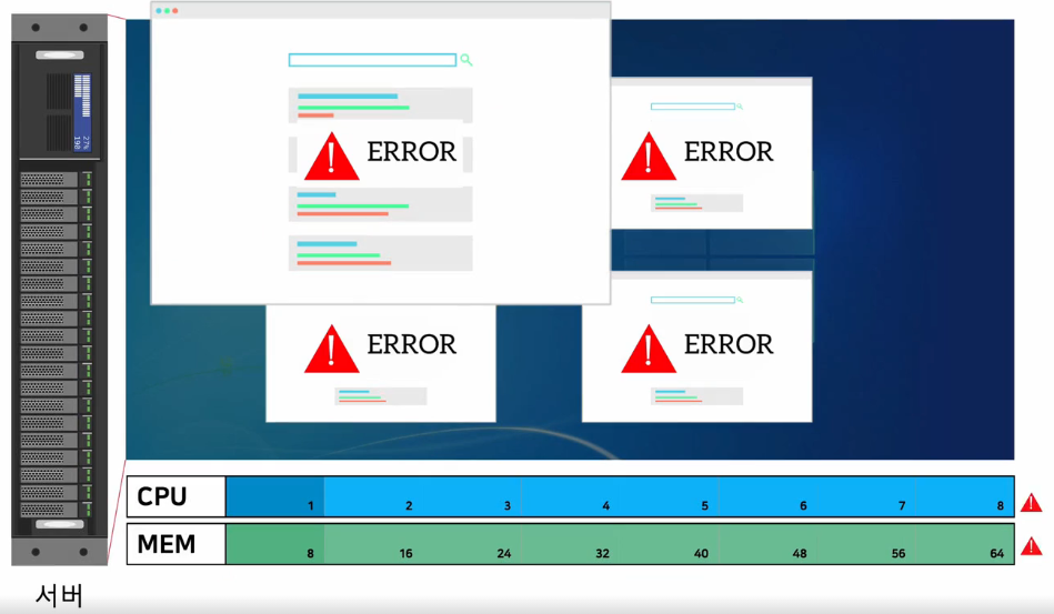 - 예로 하나의 프로그램의 사용량이 급증해 리소스를 소모하게 된다면, 다른 프로그램의 운영에도 영향을 끼치게 된다.