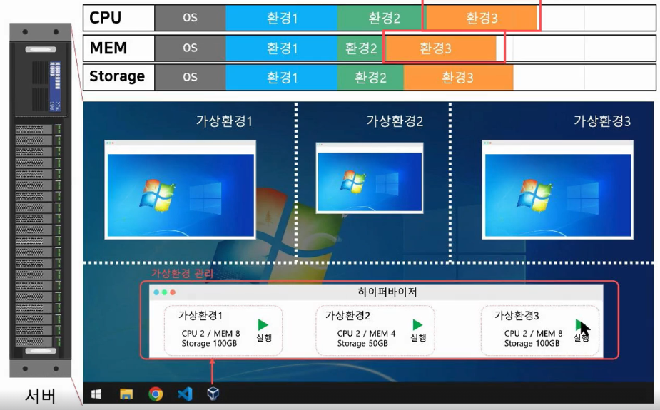 - 하나의 컴퓨터에서 여러 대의 컴퓨터를 실행할 수 있음