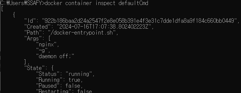 2. 실행중인 컨테이너의 메타데이터 등 세부 정보 조회