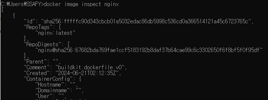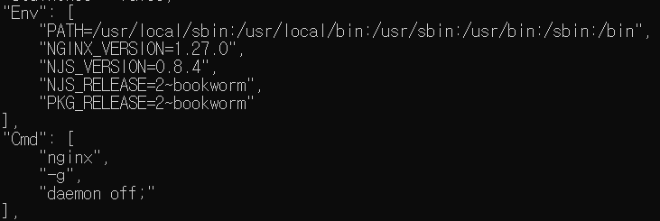 - 컨테이너의 env, cmd가 이미지의 env, cmd와 동일한 것을 확인할 수 있다.