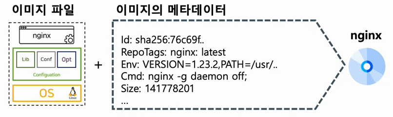 - 이미지를 컨테이너로 실행할 때, CMD에 있는 명령어를 통해서 어떤 프로그램을 실행할지를 메타데이터에서 결정한다.