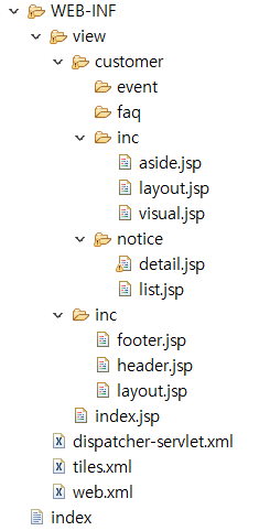 각 파트들에 어떤 jsp파일을 적용시킬 것인지 작성한다.