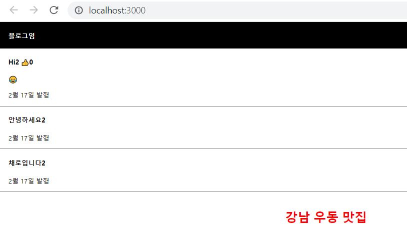 <h4>{글제목[0]} <span onClick={()=>{따봉변경(따봉+1)}}>👍</span>{따봉}</h4>