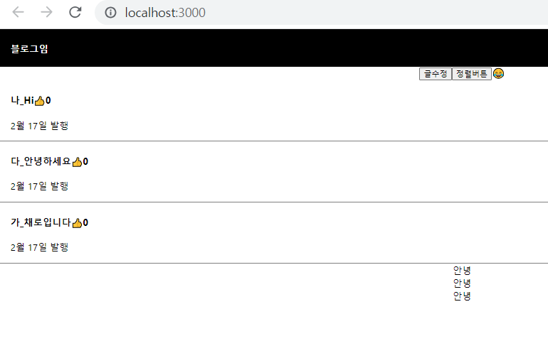 let [글제목,글제목변경] = useState(['나_Hi','다_안녕하세요','가_채로입니다']);