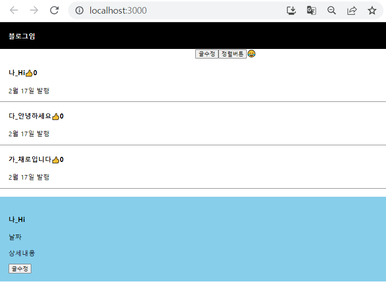 현재는 목록의 어떤 제목을 클릭해도 아래와 같이 첫번째 제목인 '나_Hi'만 출력되는상태이다.