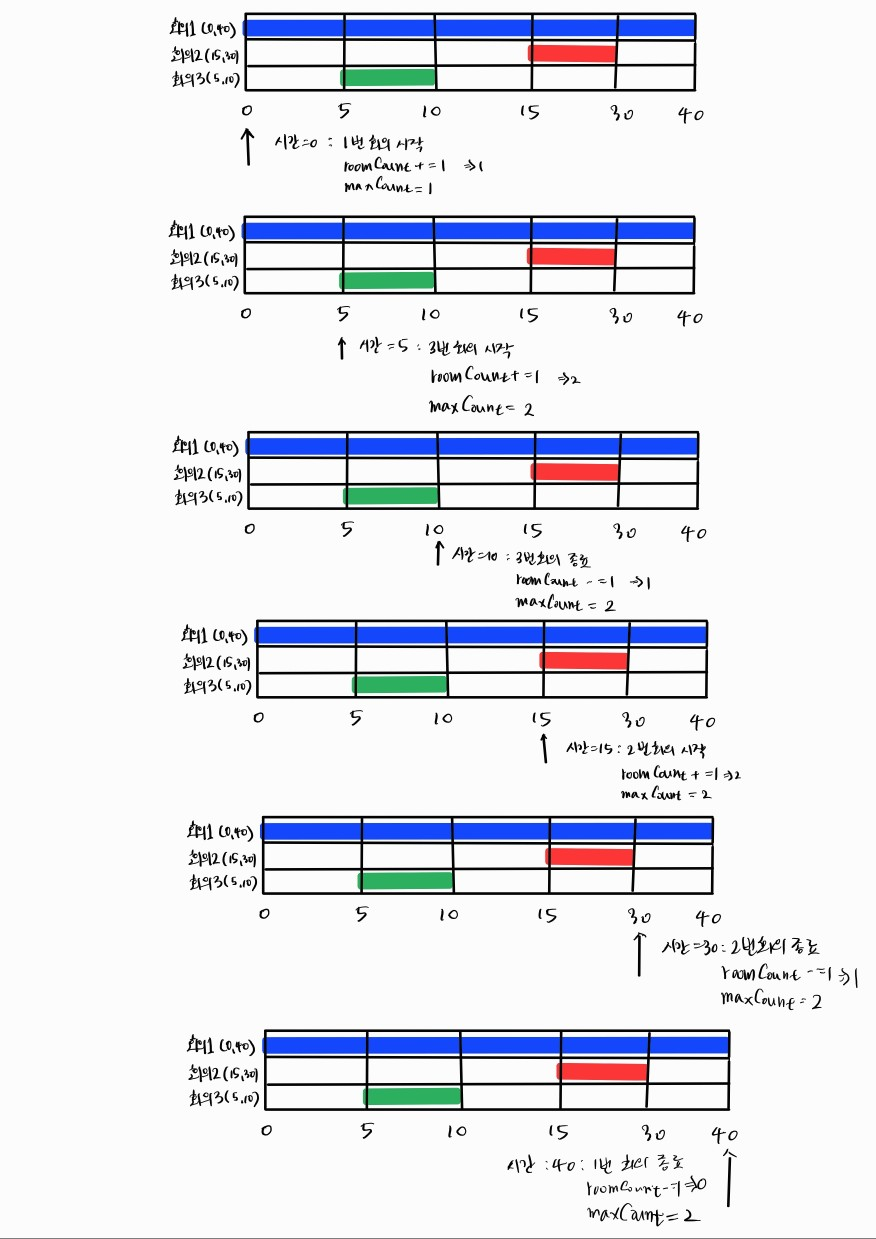 6. 맨 마지막 위치에서 현재 방 개수와 maxCount 비교가 반복문 내에서 실행되지 않으므로