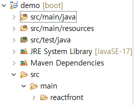 다른 화면이 출력되길 원한다면 src->main에 index.html 파일을 생성해주면 된다만아래 React에서 UI를 출력할 것이므로 생성할 필요는 없다.